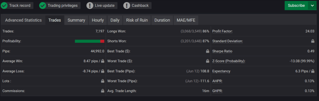 Fees are billed monthly and calculated per account, based on net profit. The base fee of €249/Setup Fee(One Time) applies to all accounts.